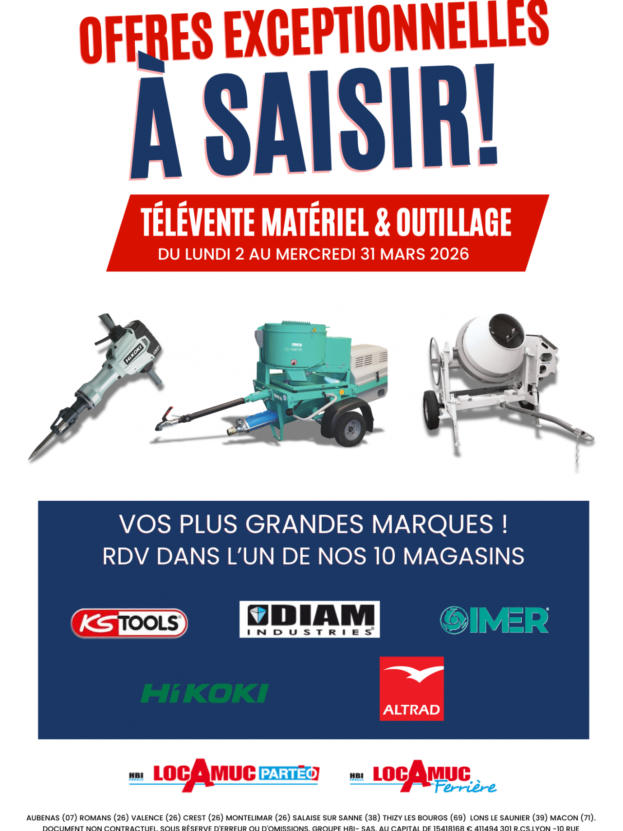 Du 02 au 31 mars 2026, profitez de notre offre télévente exclusive pour vous équiper avec des matériels et outillages de grandes marques à des conditions exceptionnelles.